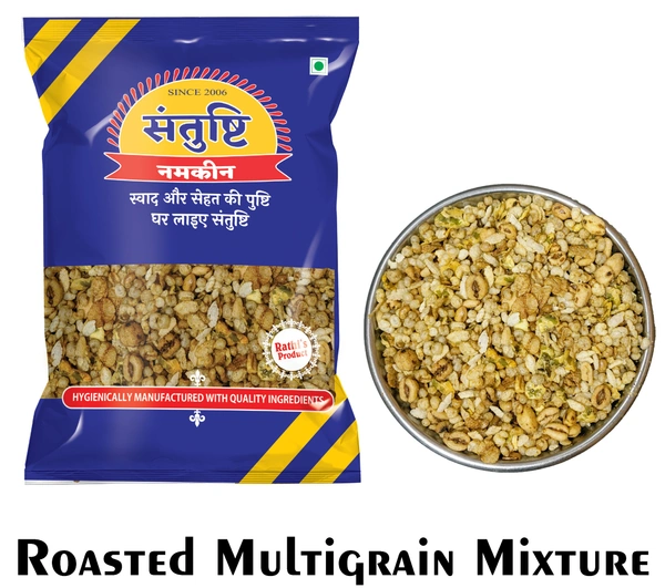 <p> FLAVOUR :- Namkeen & zero added Sugar</p><p> INGREDIENTS :- Poha, Wheat, Soya, Jowar, Bajra, Moong, chana, masoor, melon seeds, cumin seeds, iodized salt, seasoning, oil(for seasoning purpose only) </p><p> BRAND :- Santushti Namkeen</p><p> SPECIALITY :- Highly Nutritious Mixture with traditional Indian Taste</p><p> DIET TYPE :- Vegeterian</p><p> FORM :- Fresh</p><p> ABOUT THIS ITEM :-</p><p> A roasted multigrain mixture specialty refers to a unique or exclusive blend of different types of grains that have been roasted or cooked, and likely to be flavored with special spices or ingredients.</p><p> The roasted mixture can be used as a topping for yogurt or cereal, as an ingredient in granola or trail mix, or as a side dish on its own. It can also be eaten as a snack or added to a salad for added texture and flavor.</p><p> Roasted Multigrain mixture contains various types of elements which are high in protein and nutrients</p><p> Ready to eat, tasty & super nutritious multigrain snacks </p><p> This Multigrain Mixture namkeen is a light snack which keeps your cravings in check</p><p> low-calorie snack that you can include in your weight loss diet. It is a perfect teatime snack and can be savored in the form of chaat as well. </p><p>The best part about consuming roasted namkeen is that they cansatisfy your hunger without loading you with calories<p> </p><p>